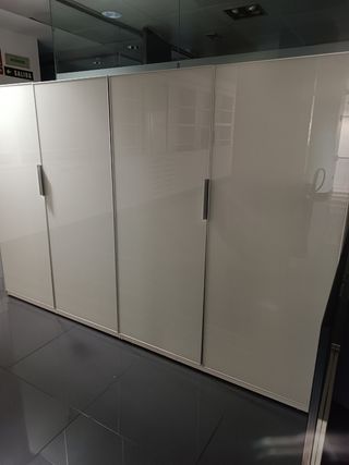 Armario de dos puertas correderas con acabado en espejo. - 2mt de largo x 2,30 mt de alto y 65cm de fondo De una exposición Lacado exterior Interior de madera - Diseño moderno y funcional. - Amplio espacio de almacenamiento. Precio sin montaje
