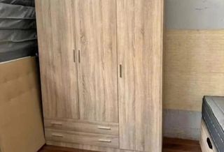 Armario de madera con un diseño moderno y espacioso. Nuevo empaquetado! Hacemos envíos y montajes a domicilio contrareembolso. También nos pueden contactar a través de WhatsApp al 632763694 - Medidas: 2 metros de alto, 2 metros de ancho y 50 cm de profundidad. - Dispone de varias baldas para almacenamiento. - Incluye cajones en la parte inferior para mayor organización. - Puertas abatibles que dan acceso al interior.