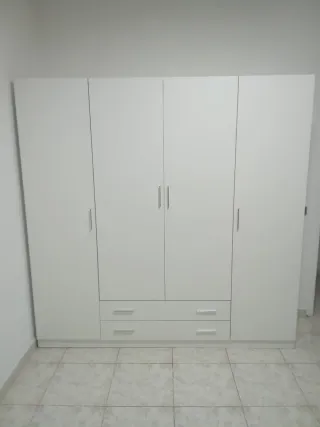 Armario de cuatro puertas con un diseño moderno y funcional. Disponemos tres colores que son Blanco, beige,ártico. Está hecho de madera con doble refuerzo, es muy resistente y espacioso!! Este armario le da un toque elegante y acogedor a la habitación! Armario de 4 puertas! 240€ - Medidas: 200 cm de ancho, 52 cm de fondo y 200 cm de alto. - Profundidad interior de los compartimentos: 159,5 cm. - Ancho de cada puerta: 50 cm. - Cajones: 2 cajones con medidas de 100 cm de ancho y 15 cm de alto. - Altura del zócalo: 10,5 cm. Si te interesa no dudes en escribirnos!.