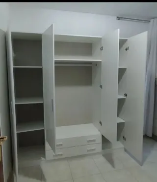 Armario espacioso y funcional, ideal para organizar tu ropa y accesorios. Se encuentra en buen estado. - Amplias baldas para almacenamiento. - Cajones integrados para mayor organización. - Diseño moderno y elegante. lleva las puertas a parte (se pueden añadir), yo lo tengo sin puertas. Armario sin desmontar. (por eso el precio economico)
