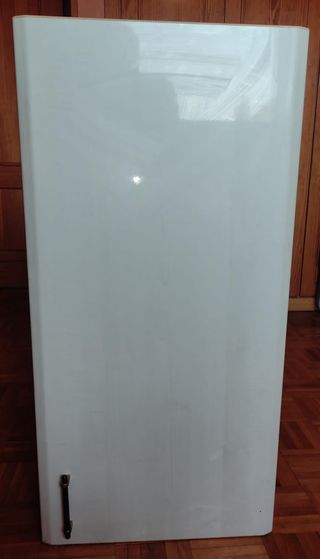 Armario con estantes (3 concretamente) Color madera blanca con brillo en la puerta