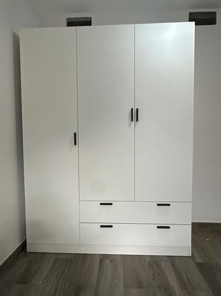 Armario de 3 puertas – práctico y espacioso 🪑 Armario ideal para dormitorio, con buen espacio para colgar ropa y estantes para organizar todo sin problema. Diseño sencillo, resistente y fácil de encajar en cualquier habitación. 🎨 Disponible en colores: blanco, ártico y roble 📏 Medidas aproximadas: 150 cm ancho x 210 cm alto x 50 cm fondo ✅ 3 puertas ✅ Estantes interiores ✅ Barras para colgar ✅ Se desmonta fácilmente para transporte Funcional y cómodo, perfecto si buscas aprovechar bien el espacio. 📦 Hacemos envíos por todo Catalunya a contrareembolso 📲 Para más info, WhatsApp: 698 * 466 * 075 19