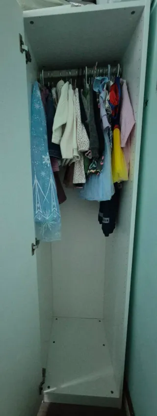 Armario PAX de IKEA con unas medidas de 50 cm de ancho, 58 cm de fondo y 201 cm de alto. Ideal para organizar tu ropa y accesorios. Con puerta y barra en el interior. - Estructura de madera. - Color blanco. -Tirador forma de nube de Zara Home. Muy buen estado. Poco uso.