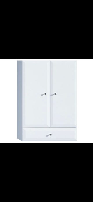 Armario de baño con diseño moderno y funcional. Perfecto para optimizar el espacio. Modelo Bisel de 2 puertas mas 1 cajón fabricado en melamina. -Mueble suspendido con estructura de 18 mm de grosor -Sujeción mediante colgadores ajustables en altura y profundidad con sistema antivuelco -2 puertas de hoja practicable y estante en su interior, mas 1 cajón grande en la parte inferior del mueble -Puertas y frente de cajón de 18 mm con tiradores crom. plateados. -Ancho: 50 cm -Alto: 72 cm -Fondo: 22,5 cm - Acabado en blanco brillo. - Diseño suspendido para fácil limpieza.