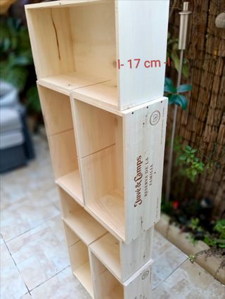 Lote 6 Cajas de cava Juve & Camps sin tapa para estanterías Medidas de cada caja Largo 47cm , Fondo 25 cm y altura 17 cm Medidas del conjunto Altura 144 cm , Ancho 50 cm No incluye tornillos y tacos Madera no barnizada ✅Ver más cajas en mi perfil Decoración bodegas , decoración restaurante , decoración bar , decoración bodegas , cajas de fruta , decoración rústica , decoración ático , albañiles , cajas de madera nuevas , estanterías Billy Ikea, decoración escaparate , vinilos de madera, en oferta , como nuevas , decoración vintage , Baúles de madera , estanterías rusticas , cajas de vino