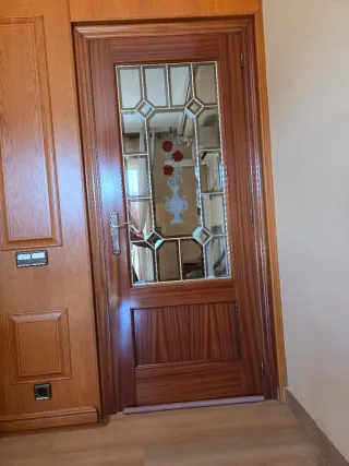 Puertas de 201cm de altas, manivelas renovadas -3 ciegas con apertura dcha 72x3'5cm, galce 7cm -1 con vidriera floral biselada (foto), apertura dcha 72x3'5cm, galce 7cm -1 ciega con apertura izq 72x3'5cm, galce 7cm -1 ciega con apertura dcha 62x3'5cm, galce 8cm y condena -1 ciega con apertura izq 62x3'5cm, galce 8cm y condena -1 con vidriera (foto), apertura izq de 82x3'5cm, galce 7cm -1 puerta corredera sin guías con vidriera (foto), 72x3'5cm, galce 8cm -1 doble puerta armario empotrado de 180x60cm y 40x60cm (foto), galce 6cm * Se incluye galce, tapetas, herrajes y manivelas Precio: 70€ ciegas, 130€ con vidriera, armario 150€