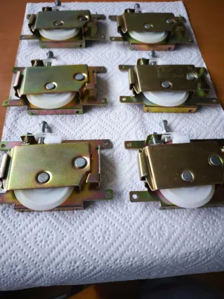 ¿Tus puertas de armario no deslizan bien o hacen ruido? Vendo dos lote de 6 rodamientos inferiores nuevos de alta calidad, ideales para armarios empotrados, puertas pesadas y de espejo. Características técnicas: Construcción robusta: Cuerpo de acero galvanizado reforzado (gran durabilidad). Deslizamiento silencioso: Rueda de nylon de alta densidad que protege el riel. Sistema ajustable: Incluye tornillo de regulación para nivelar la altura de la puerta perfectamente y muelle de seguridad antidescarrile. Estado: Nuevos a estrenar. Precio: * Lote de 6 unidades: 24€ (Solo 4€ por unidad). ¿Necesitas más? Dispongo de más stock.