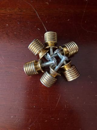 Tiradores en asa de madera y metal de 96mm separación entre tornillos (12 unidades), tiradores simples planos-redondos de madera (4 unidades), tiradores simples metálicos redondos dorados (6 unidades), tiradores simples de madera-metal (10 unidades), tiradores dobles curvos gris de metal (4) y tiradores simples forma semiluna de piedra negra (12 unidades) -total 48 tiradores- que se han sustituido por otros nuevos y que estaban en perfecto funcionamiento con defectos por los años de uso. Se pueden verder por separado a precio a convenir sin compromiso.