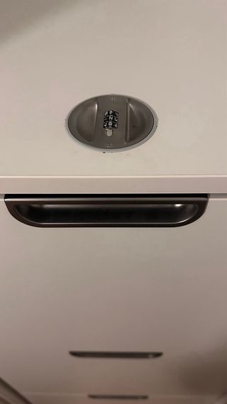 Armario de almacenaje con cuatro cajones. - Diseño de líneas rectas. - Tiradores integrados en cada cajón. - Cerradura en la parte superior para mayor seguridad.