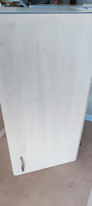 Armario de madera con una balda interior. Su diseño sencillo lo hace versátil para cualquier estancia. - Puerta con tirador metálico. Medidas: 70 cm alto x 40 cm ancho x 32 cm fondo La puerta tiene un pequeño defecto