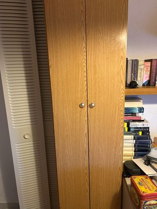 Armario alto con un diseño moderno y elegante. No se hace reservas porque la gente no es seria.Eo armario es muy bueno y tiene muy buena capacidad tiene en cuenta que compre más baldas. - Acabado en madera de roble. - Tirador metálico. - Amplio espacio de almacenamiento.