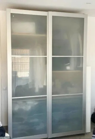 Armario PAX de Ikea. En buen estado. Tiene 6 cajones y 4 baldas. Se entrega desmontado. - Puertas correderas de cristal translucido y metal. Funcionan muy bien. - Estructura de madera.