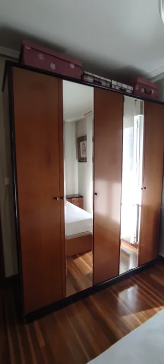 Armario grande de madera maciza con espejo – 2,25m Se vende armario grande de madera en muy buen estado. Mueble robusto y de calidad, ideal para dormitorio. Gran capacidad de almacenamiento 🧰 Características: Varias puertas (una con espejo) Cajones en la parte inferior Interior con baldas y espacio para colgar Madera resistente Estilo clásico ✅ Estado: bueno, listo para usar ❗ Se vende por cambio de mobiliario 🚚 Importante: se vende desmontado y ayudamos a bajarlo al portal, si hiciera falta. NO ENVIAMOS solo recogida en Oviedo 💰 Precio: 220 € (negociables)