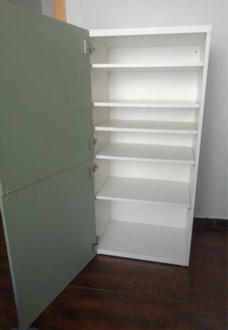 mueble besta estructura blanca 60x40x128 cm dos puertas en torno verde 4 bisagras 5 baldas blanca Se entrega en Mataro, bloque con ascensor. Está montado. Se puede entregar desmontado.