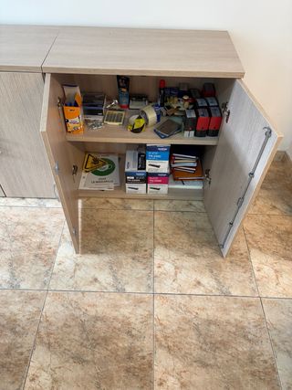 Armario de oficina con puertas y cerradura. De buena calidad y en buen estado - Acabado en madera. - baldas metálicas Tengo de dos tamaños Los grandes mide 1.97 alto 80 ancho 42.5 fondo Pequeños 1.35 de alto 80 ancho 42.5 fondo Me quedan dos pequeños y 2 grandes Tienen llaves para cerrar PRECIO GRANDES 120€ PEQUEÑOS 90€