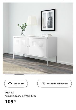 Armario de estilo industrial de IKEA, modelo PS. Cuenta con puertas con cerradura. Está en muy buen estado con marcas normales de uso. Ha estado en un despacho. - Diseño moderno y funcional. - Acabado en blanco. Salida para cables en la parte inferior: recoge todos los cables en el mismo lugar. Las puertas tienen cerradura, para que puedas poner tus objetos más valiosos a buen recaudo. Patas altas que facilitan la limpieza.