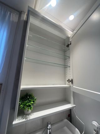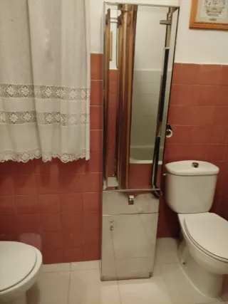Armario de baño, con puerta esspejo corredera. Muy práctico. Lo vendo porque he reformado el baño y no me entra. Las medidas son 80x60