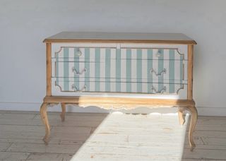 Cómoda de madera con rayas verde
