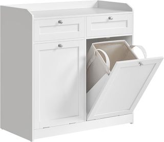 Mueble Portabienchería para Baño, Mueble de Baño Con 2 Cajones Y 2 Cestos Portabienchería, Sacos Internos Removibles Con Asas, 40 X 78,9 X 80,2 Cm, Blanco Nube BBC751W01