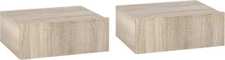 Esta pareja de mesitas de noche suspendidas es elegante y moderna, perfecta para cualquier decoración. Fijadas a la pared, puedes elegir la altura deseada, facilitando la limpieza del suelo. Cada mesita mide 40L x 30P x 15Acm y tiene un cajón deslizante para guardar ropa de cama y objetos personales. Fabricadas en panel de partículas de grado P2, son robustas y pueden soportar hasta 10kg (2kg para el cajón). Montaje requerido. Excelente calidad y diseño que ahorra espacio para mantener todo en orden. Renueva tu hogar con estas prácticas mesitas de noche!