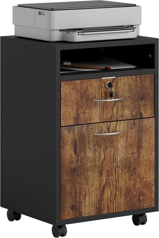 Archivador de Oficina con Cajón, Ruedas con Freno y Estante Abierto, Cajonera de Oficina con Cerradura y 2 Llaves para Carta/Legal/Formato A4, Armario para Estudio, 40X35X60Cm, Marrón