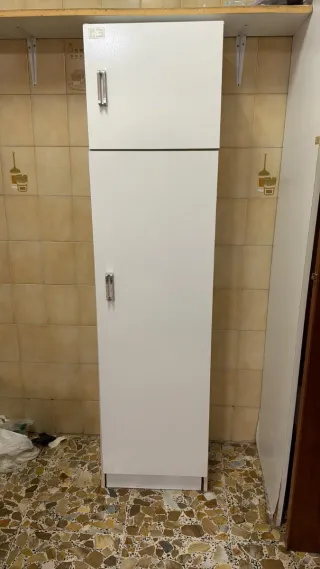 Armario de almacenamiento para productos de limpieza o cómo despensero en melamina reforzada. Ha sido usado 4 meses y está prácticamente nuevo y sin ninguna marca. Medidas: 200 x 60 x 32 cm de fondo. SE RECOGE EN VILANOVA I LA GELTRÚ (calle Providencia), hasta el día 20 de marzo, después de recogerá en Barcelona. NO ADMITO REGATEOS.