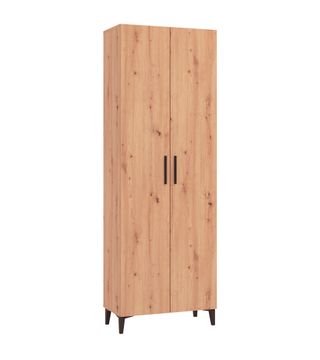 Diseñado para quienes buscan funcionalidad sin renunciar al estilo, el mueble zapatero Basile combina un acabado exterior en laminado roble artisán con interior blanco, creando un contraste moderno y luminoso. Sus dos puertas esconden cinco baldas regulables que permiten adaptar el espacio a todo tipo de calzado, desde zapatillas hasta botas. Las patas altas en color negro facilitan la limpieza del suelo y aportan un toque industrial contemporáneo, a juego con los tiradores frontales. MEDIDAS: Ancho: 68 cm | Fondo: 35 cm | Alto: 195 cm
