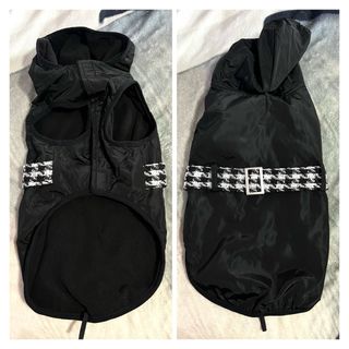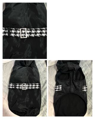 Chaqueta negra con cinturón para mascota.