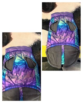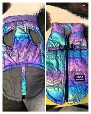 Chaqueta-abrigo colorido para mascota. En buen estado (se vende por falta de uso- está haciendo hueco en el cajón-limpieza de armario-cosas que ya no uso) talla XL- talla pequeña sin marca.