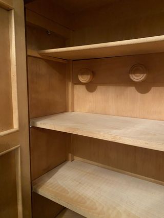 Preciosa armario de madera en color marrón. Se encuentra en muy buen estado. - Diseño curvado y elegante. - Cuatro puertas grandes.