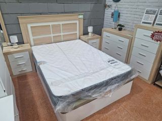Conjunto de dormitorio completo con un diseño moderno y elegante. - Canapé (135 o 150x190) - Cabecero con detalles en madera y blanco. - 2 Mesitas de noche con tres cajones. - Cómoda - Sinfonier *Preguntar por los colchones tenemos grosor de 18cm, 23 o 28* No lo incluyen en la oferta *Si quieres armario de este mismo juego lo tenemos 299.99 adicionales* No lo incluyen en la oferta *Tenemos espejo para encima de la comoda por 30 adicionales* No lo incluyen en la oferta