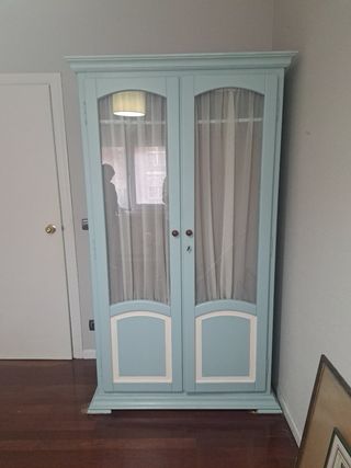 Armario de madera y cristal azul