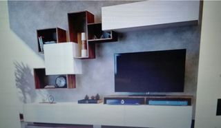 Mueble de madera con varios compartimentos y puertas. - Diseño de esquina. Está montado e 4 módulos - Acabado en tono marrón. Regalo butaca que aparece en fotos . Desmontar y transportar por cuenta del comprador , está en Santander aparcamiento en la puerta.