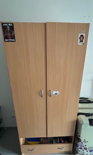 Se venden dos armarios, uno de madera y otro de plástico. - Color marrón y blanco. - Materiales: madera y plástico. Armario grande: 1,50 x 2 x 50 (150€) Armario mediano: 73 ancho x 1,80alt x 52 largo (75€)