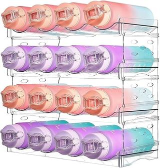 Organizador de Botellas de Vino y Agua Apilable para Armario, Frigorífico, Portabotellas de Plástico para 16 Botellas para Cocin