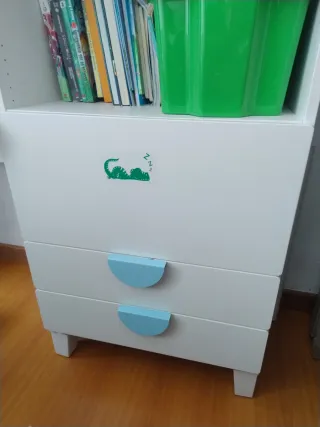 Mueble blanco y azul con cajones