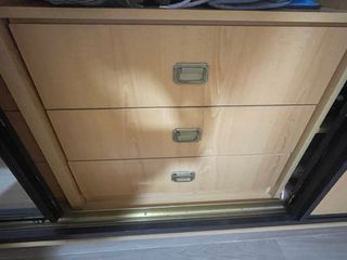 Armario empotrado con puertas correderas de 1metro de ancho cada una. son 2 - Acabado en madera. - 2 cajoneras de 60*50 - Color marrón.