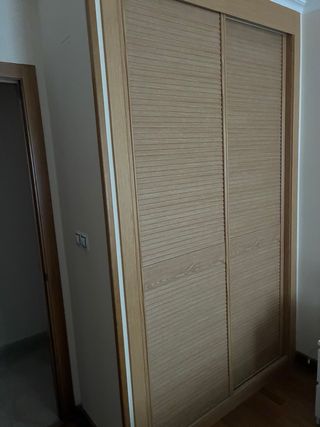 Armario empotrado con un diseño moderno y elegante. - Acabado en color roble. - Puertas correderas para optimizar el espacio. -Seminuevo