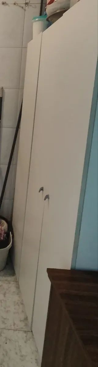 Armario escobero multiusos de gran capacidad. Perfecto para organizar tu hogar. Tiene algún defecto estético pero en general está bien Hay que venir a recoger! Altura 180cm Anchura 65,5cm Profundidad 40,5cm - Diseño de dos puertas con tiradores redondos. - Base inferior para mayor estabilidad.