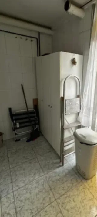 Armario auxiliar de Ikea, perfecto para organizar escobas y otros utensilios de limpieza. - Diseño moderno y funcional. - Acabado liso y fácil de limpiar.
