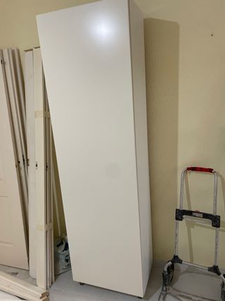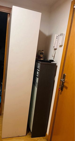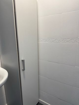 Mueble alto para escobas y utensilios de limpieza. Su diseño es sencillo y funcional. - Puerta con tirador. - Estructura alta y estrecha. Menos de una semana de uso queda grande en espacio que queria