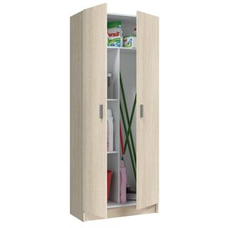 Mueble escobero y para productos de limpieza como fregona, escoba, aspiradora, etc. O bien puede usarse como despensa para guardar otros productos. - Dos puertas con tiradores. - Amplio espacio interior para almacenamiento. Medidas: 79cm de ancho x 42cm de fondo x 180cm de alto
