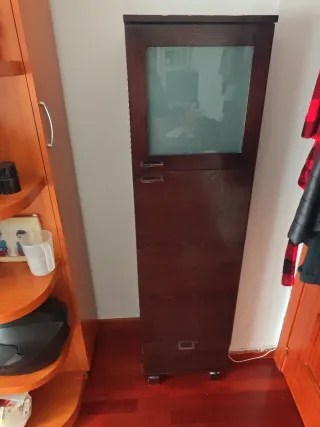 Se vende una estantería en buen estado, medidas 191*96*35 cm. Y un armario estrecho en buen estado con medidas 191*51*36 cm. Precio por uno 35 euros. También tenemos otros muebles. Tenemos entrega por precio económico. - Diseño de Ikea. - Puerta con cristal. - Estantes interiores.
