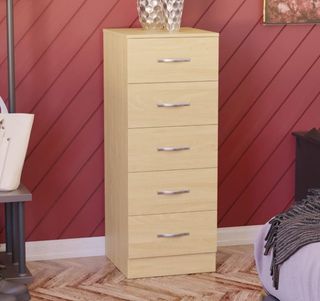 Vida Designs Pecho Cómoda Estrecha, Pino, 36D x 34.5W x 90H centimetres Marca Vida Designs Material Madera de ingeniería Dimensiones del producto 36f. x 34,5an. x 90al. centímetros Número de cajones 5 Color Pino Estilo Moderno