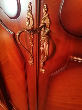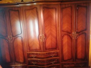Espectacular armario de madera de buenísima calidad, de los que ya no se hacen. Es muy grande, mucha capacidad. 3 puertas dobles y 5 cajones. Con tiradores en bronce. En muy buen estado. Vendo por falta de espacio. Recogida en un pueblo de Ciudad Real. Medidas: - Ancho 2'43m - Alto 1'93m - Fondo 61cm en la parte más estrecha y 75cm en la parte más ancha aprox.