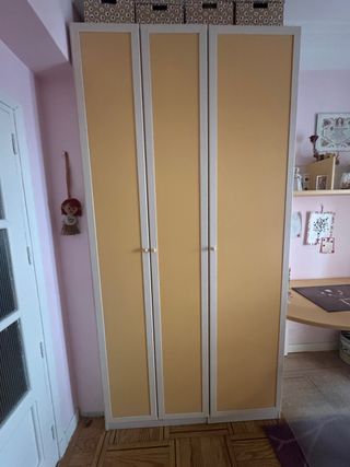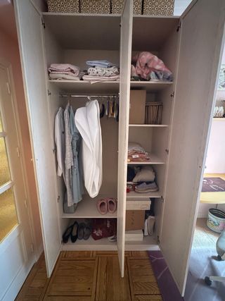 Orden y autonomía para su habitación. Un armario auxiliar diseñado para las dinámicas familiares. Su exterior blanco con dos espejos multiplica la luz y fomenta la independencia de los pequeños al vestirse. El interior (acabado madera) maximiza la eficiencia espacial: 3 baldas adaptables a sus etapas de crecimiento y 3 cajones inferiores accesibles a su altura. Estructura sólida y conservación óptima (cajas textiles excluidas). La solución perfecta para ganar capacidad manteniendo la calma visual en su cuarto. Recogida por el comprador. No se hace envíos.