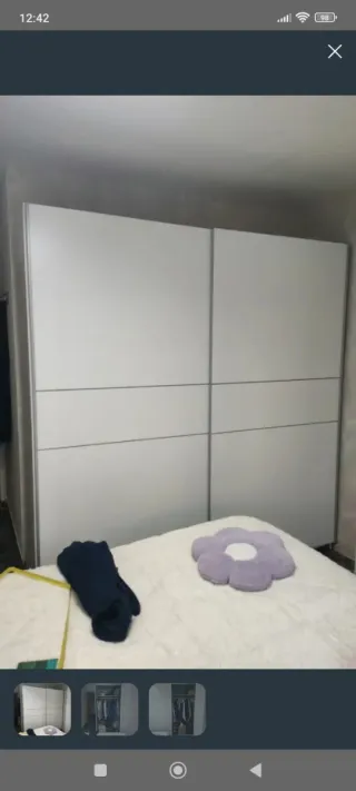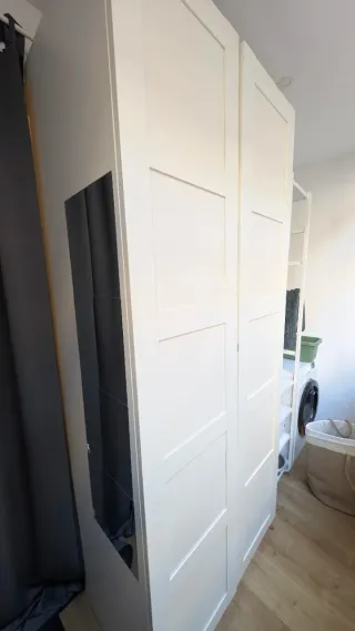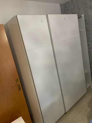 Armario de gran capacidad con puertas correderas. Como nuevo, año y medio de uso. PRECIO NEGOCIABLE - Diseño moderno y minimalista. - Acabado liso y fácil de limpiar. - Tiradores integrados.