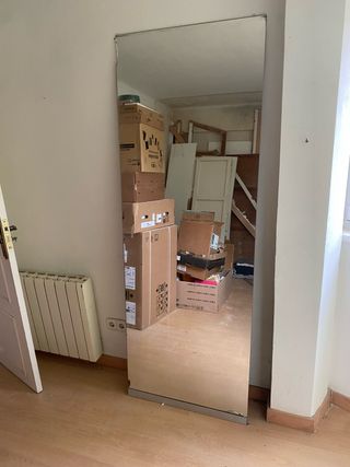 Espejo de cuerpo entero. Previamente era puerta de un armario, pero se ha usado como espejo en la pared los últimos años. Tiene detalles de uso evidentes (ver fotos), pero como espejo de cuerpo entero, es muy util. 200cm x 73cm Recoger en La Bonanova, frente al Queens College.