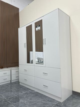 680*558*196 ☎️ Armario totalmente nuevo, sin uso, en color blanco moderno con espejos . Ideal para dormitorio principal, habitación juvenil o piso de alquiler. Destaca por su gran capacidad de almacenamiento, perfecto para mantener toda tu ropa organizada gracias a sus múltiples compartimentos y cajones. ✅ Nuevo a estrenar ✅ Diseño elegante y actual ✅ Espejos integrados (no necesitas comprar uno aparte) ✅ Gran espacio para ropa, zapatos y accesorios ✅ Fácil de combinar con cualquier decoración ✅ Ideal para pisos, apartamentos o casas 📏 Medidas: Alto: 190 cm Largo: 160 Ancho 50 cm