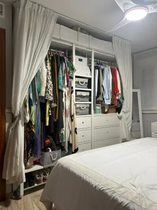 Armario completo en perfecto estado, de grandes dimensiones con zapatero, cajones y altillo. Fondo 36 cm. - Amplio espacio de almacenamiento. - Incluye zapatero en la parte inferior. - Incluye 3 cajones 40 - Incluye 3 cajones de 80 - perchero para vestidos largos - perchero altura clásica (chaquetas, pantalones,...) - altillo - se puede añadir tablas si se desea ya que dispone de perfiles instalados para modificar el armario al gusto. - cortinas y rail para sujeción